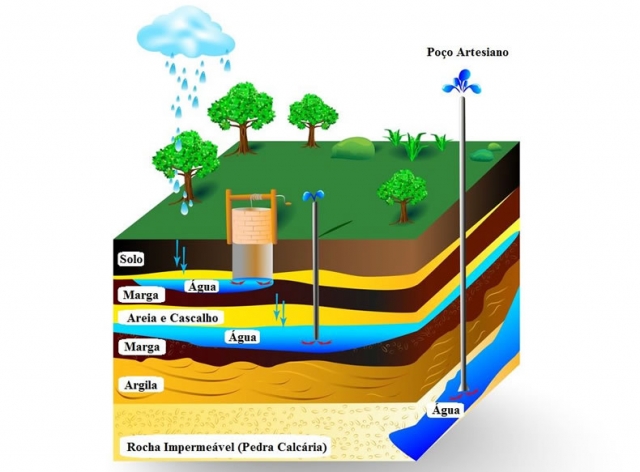 O poço artesiano é perfurado com o objetivo de captar a água que se encontra nos lençóis freáticos. Essa água armazenada nos aquíferos, que ficam no subsolo, está infiltrada em rochas e sedimentos, em grande profundidade. Em geral, é uma água com melhor qualidade física, química e biológica, protegida da contaminação humana, não sendo necessário tratamento para o consumo.