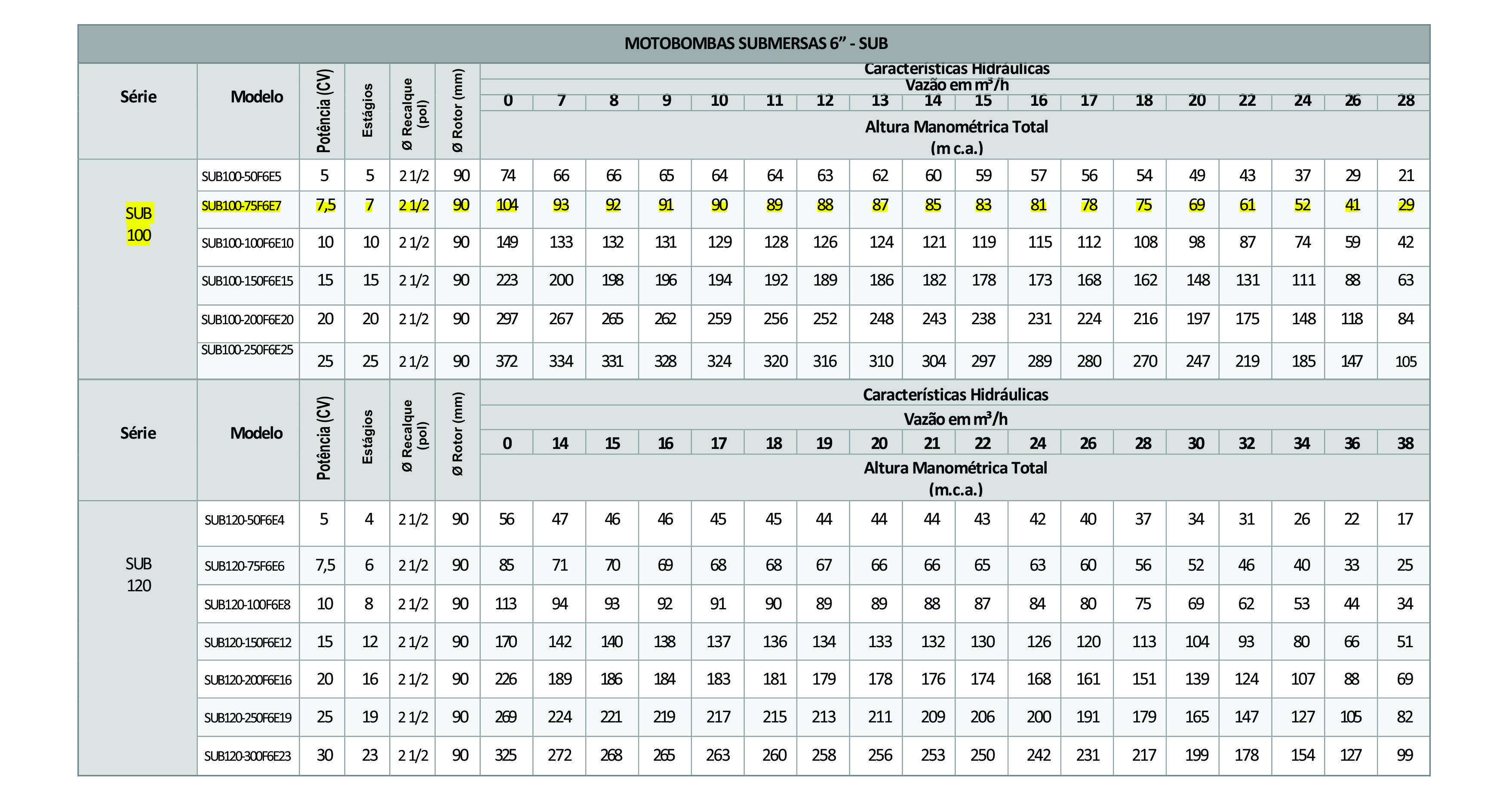 A Linha SUB 100 - Rotor fechado é composta por motobombas centrífugas multiestágios, acopladas a motores elétricos projetados especialmente para funcionar dentro da água, a grandes profundidades.