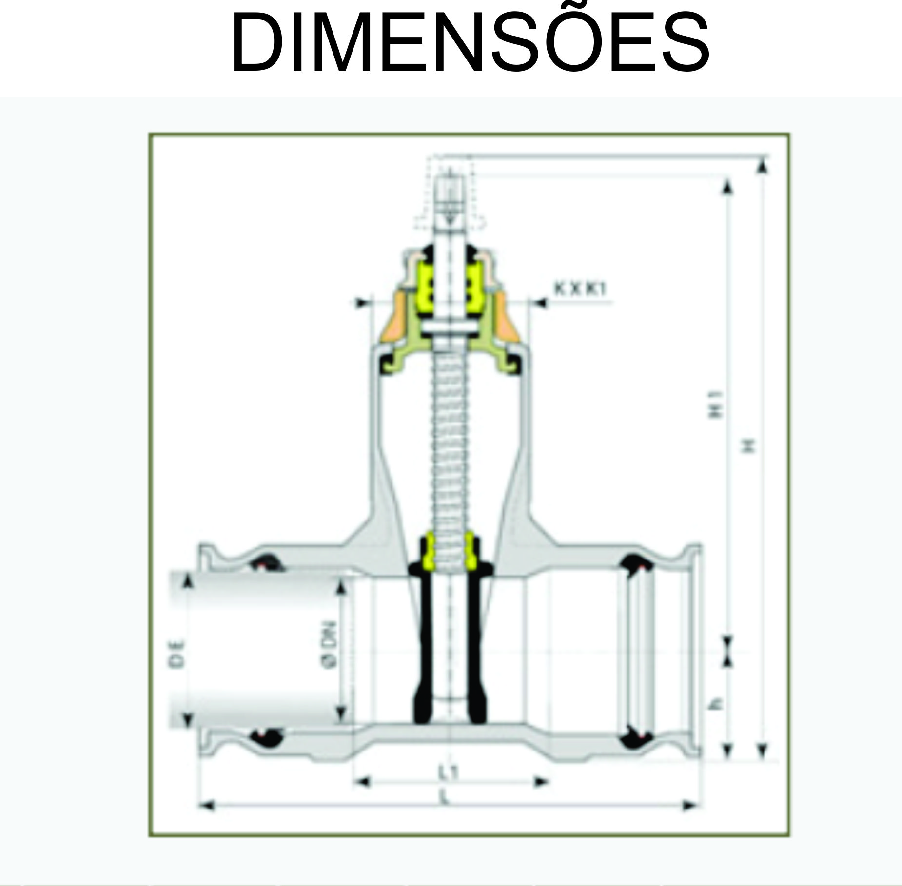 Pressão máxima de serviço até 1,6 MPa,extremidades com bolsas para tubos de PVC/PBA, conforme a norma NBR 5647.Acionamento através de cabeçote de ferro fundido dúctil, volante, cabeçote de ferro fundido dúctil + redutor, volante +redutor.Cilindro pneumático, hidráulico, atuador elétrico e acessórios by-pass, sob consulta.