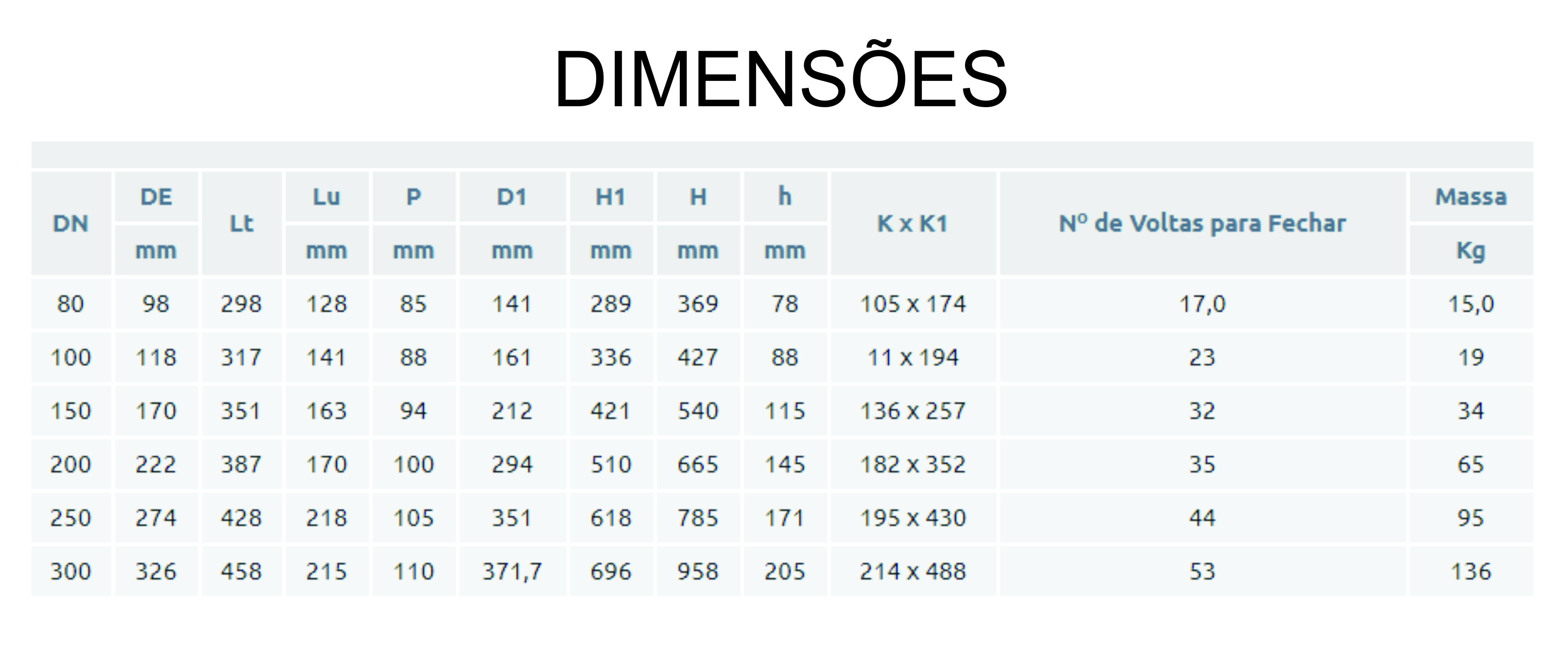• Nome: Válvula de Gaveta Euro 25 c/ Cabeçote DN100mm