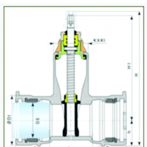 Haste de manobra inteiriça tipo não ascendente confeccionada em aço inox, conforme norma ASTM A-276 tipo 420, sem rebaixos para alojamento de anéis de vedação.Porca de manobra independente da cunha, removível confeccionada em latão com no máximo 5% de chumbo.Vedação da haste com 2 anéis toroidais (o´rings).Fixação da tampa ao corpo sem parafusos, com vedação por efeito autoclave.Pressão máxima de serviço até 16kgf/cm², extremidades com bolsas para tubos de ferro fundido dúctil (NBR7675) ou PVC DEFOFO (NBR7665).