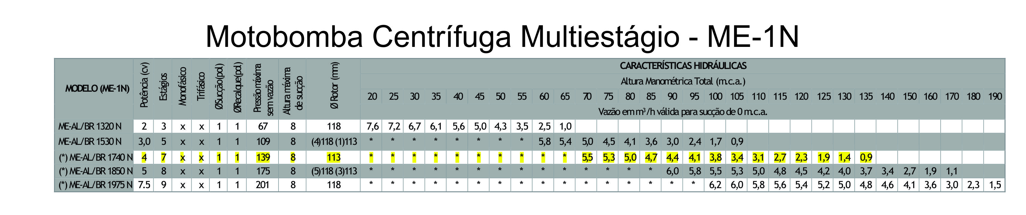A Linha ME-N1 - É composta por motobombas centrífugas de superfície monoestágio, acopladas a motores elétricos.