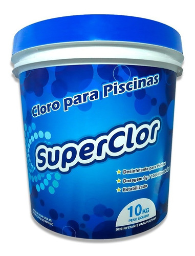 Superclor é um cloro de origem orgânica, estabilizado, destinado a desinfecção de piscinas, onde o principal atrativo e o custo benefício. Fórmula exclusiva a base de Dicloro-s -Triazinatriona de Sódio ( DICLORO ISOCIANURATO DE SODIO ).